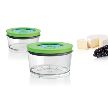 2 vakuové dózy kulaté (0,75l + 1,5l). Kompatibilní s veškerými vakuovacími produkty Bosch.