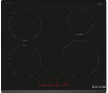 indukční varná deska, 60 cm, 4 indukční varné zóny, ovládání DirectSelect+, PowerBoost, Smart Hood Automatic, HoodControl, funkce Assist, dětská pojistka, 2stupňový ukazatel zbytkového tepla pro každou varnou zónu, příkon: 7,4 kW, přední fazeta