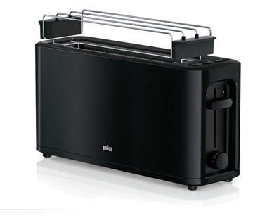 Současně je možné připravit až 2 toasty. Otvory na opékání jsou dostatečně dlouhé a široké i pro větší kusy pečiva. K dispozici máte také speciální nástavec, který se hodí především pro rozmrazování. Topinkovač Braun HT3110BK ovládáte prostřednictvím otočného knoflíku a dotykových tlačítek, která najdete v horní části spotřebiče. Vybírat můžete celkem ze 7 úrovní opékání. Kromě klasického opékání lze zvolit také funkci pro opětovný ohřev nebo funkci rozmrazování. Spotřebič se vypíná automaticky. |