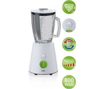 příkon 800 W, unikátní trojúhelníkový tvar mixovací nádoby, skleněná nádoba odolná vůči teplotním šokům ("Thermo resist") o objemu 1,75 l, 5 rychlostí, turbo funkce, pulsní funkce, vyjímatelný nůž z nerezové oceli, bílo/stříbrná