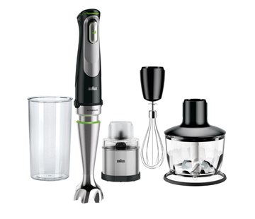 tyčový mixér • příkon 1000 W • nerezová mixovací tyč • 600ml plastová nádoba s odměrkou • plynulá regulace rychlosti • vhodný pro mixování, šlehání, sekání, drcení ledu, mletí kávy a koření • pohyblivá mixovací noha s čepelí ACTIVEBlade • technologie SplashControl proti rozstřiku • Smart speed regulace rychlosti silou stisku • příslušenství - mixovací tyč, šlehací metla, 600ml mixovací nádoba s držadlem, 500ml sekací nádoba, nerezový sekací nůž, nerezový mlýnek na kávu a koření • hmotnost 0,99 kg