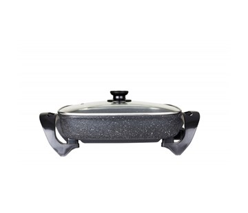 je vhodná na pečení, smažení, zapékání, dušení i vaření; kvalitní nepřilnavý povrch; skleněné víko s nerezovou obrubou; odnímatelný termostat s plynulou regulací teploty; rozměry 30 x 30 x 7,5 cm; příkon 1500 W