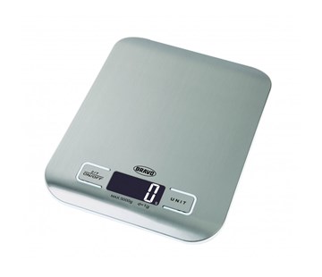 nerezová kuchyňská váha, LCD displej, váživost 5 kg, rozměr 180x140x18 mm, baterie 2xAAA součástí výrobku