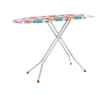 Žehlící prkno PORTY 105 x 30 cmŽehlící prkno PORTY o rozměrech 105 x 30 cm s odkládací kovovou plochou na žehličku 26,5 x 18,5 cm. Konstrukce stříbrné barvy s nastavitelnou výškou 68 - 88 cm v 7 úrovních.