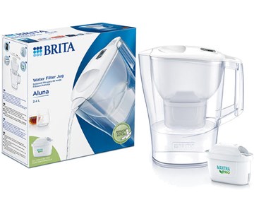 Filtrační konvice Brita Aluna v bílé barvě má celkový objem 2,4 l a využívá k filtraci vody vodní filtry Brita Maxtra Pro. Balení obsahuje filtrační konvici spolu s 1 vodním filtrem Brita Maxtra Pro Pure Performance.