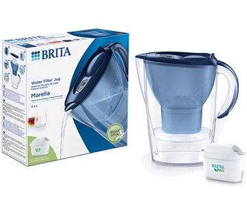 Filtrační konvice Brita Marella v modré barvě má celkový objem 2,4 l a využívá k filtraci vody vodní filtry Brita Maxtra Pro. Balení obsahuje filtrační konvici spolu s 1 vodním filtrem Brita Maxtra Pro Pure Performance.