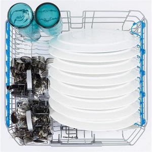 Vnitřní prostor myčky je schopen pojmout až 16 sad nádobí. K dispozici máte dva objemné koše, z nichž horní je výškově nastavitelný – můžete si přizpůsobit prostor přesně tak, jak je v dané chvíli třeba. Do dolního koše, který je o 10 % větší než standardní koše, pohodlně vložíte velké hrnce.