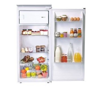 vestavná lednice s mrazicí přihrádkou • energetická třída E • objem chladničky 163 litrů • objem mrazničky 16 litrů • hlučnost 39 dB • klimatická třída N • 3 skleněné police • LED osvětlení • mrazicí výkon 2 kg/24 h • automatický rozmrazovací proces chladicí zóny • 122×54×54 cm • vestavný spotřebič bez dekorativního opláštění
