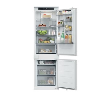 vestavná kombinovaná chladnička • energetická třída E • objem chladničky 178 litrů • objem mrazničky 73 litrů • hlučnost 35 dB • klimatická třída SN • technologie No Frost • výškově nastavitelné police • LED osvětlení • 2 přihrádky na čerstvé potraviny • mobilní aplikace hOn • Multiflow sloupec • alarm otevřených dveří • funkce Dovolená • funkce Rychlé chlazení • elektronické ovládání • možnost změny směru otevírání dveří • 177,2×54×55 cm • vestavný spotřebič bez dekorativního opláštění