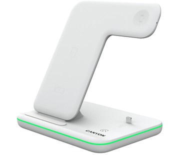 bezdrátová nabíjecí stanice podporující QI; nabíjí 3 zařízení současně; čipová sada Nuvoton; protiskluzová pogumovaná základna; dotykové tlačítko pro ovládání podsvícení; LED indikátor a podsvícení; 4 typy ochrany; kabel USB-C 1,2 m součástí balení; kompatibilní s Apple Watch / iPhone / Airpods