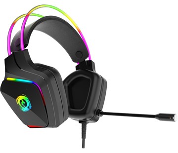 herní headset; impedance 32 ohm; frekvenční rozsah 20 Hz–20 kHz; citlivost 100 dB; náušníky z paměťové pěny; USB-A a 3,5mm jack; 50 mm měniče; kolečko pro ovládání hlasitosti; RGB podsvícení na náušnících a čelence; nastavitelný mikrofon a čelenka; délka kabelu 2 m; hmotnost 300 g