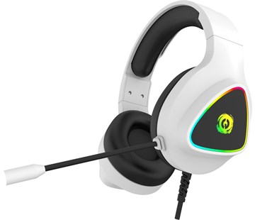 herní headset; impedance 32 ohm; frekvenční rozsah 20 Hz–20 kHz; citlivost 100 dB; náušníky z paměťové pěny; USB-A a 3,5mm jack; 50 mm měniče; kolečko pro ovládání hlasitosti; RGB podsvícení na náušnících; nastavitelný mikrofon a čelenka; délka kabelu 2 m; hmotnost 300 g