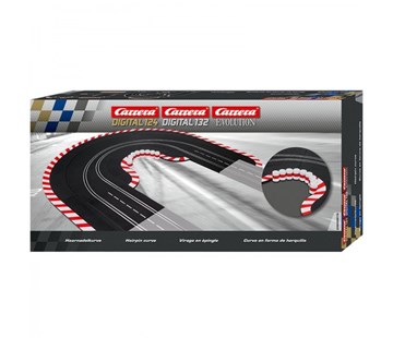 Zatáčka s úžením dráhy a krajnicí (20613) pro řady EVOLUTION, Digital 132 a Digital 124. Zatáčka má radius R1 Obsah balení:2x 3/4 rovinky2x krajnice pro standardní rovinky3x zúžení dráhy3x vnější krajnice pro 1/60° zatáčky3x vnější krajnice pro 1/60° zatáčky s pneumatikami4x ukončení