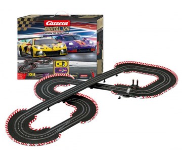 Autodráha Carrera Digital 124 dlouhá 9,3m s auty Porsche 911 RSR a Chevrolet Corvette obsahuje rovinky, zatáčky, bezdrátové ovladače a další díly. Délka trati: 9,3m (nejdelší autodráha Carrera Digital 124) Rozměry po sestavení: 309 x 255cm