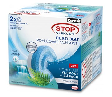 Popis a parametry Ceresit Stop vlhkosti AERO 360° náhradní tablety 2v1 svěžest vodopádů (2x450g)