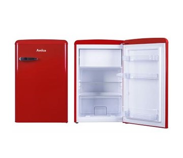 Monoklimatická chladnička Amica VT 862 AR vás na první pohled zaujme svým působivým retro provedením. Retro vzhled skvěle doplňuje výrazná červená barva, která dělá ze spotřebiče nepřehlédnutelný designový doplněk každého interiéru. Nechybí zde ani stylové chromované madlo, typické pro chladničky z 50. let minulého století.