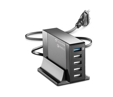 Kompaktní nabíjecí stanice od firmy Cellularline Energy Station QC nabízí 4 klasické USB porty a jeden USB port s podporou rychlého nabíjení Qualcomm®Quick Charge™ 3.0.