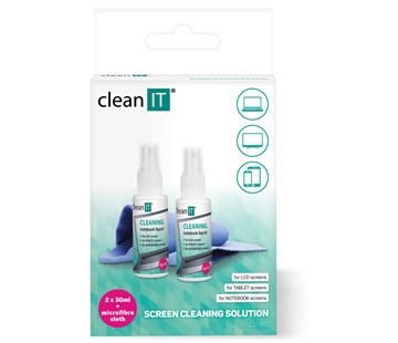 Čisticí roztok na obrazovky a klávesnice notebooků i samotné notebooky.Malá lahvička je ideální pro přenášení v notebookové brašně, kde nezabere místo a v případě potřeby rychle splní svou funkci.Součástí balení jsou dvě 30ml lahvičky s čisticí tekutinou a jedna mikrovláknová utěrka.
