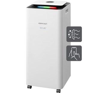 Intuitivní dotykové ovládání vám pomůže mít plnou kontrolu nad nastavením spotřebiče. Umožní vám zvolit si ze 4 režimů dle nastavení úrovně vlhkosti. Ty zahrnují automatický režim, nepřetržitý provoz, ventilátor a režim sušení prádla, který urychlí sušení prádla a zároveň vás zbaví vznikající vlhkosti. Na výběr budete mít také 2 stupně rychlosti. Odvlhčovač lze rovněž ovládat na dálku pomocí aplikace Concept Home. Rychle a jednoduše tak můžete spustit či vypnout odvlhčovač, když nejste doma, nebo zkontrolovat aktuální stav ovzduší v místnosti. Aplikace je dostupná pro Android a iOS. |