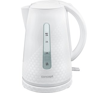 Rychlovarná konvice Concept RK 2320 zaujme na první pohled každého návštěvníka vaší kuchyně. Její atraktivní 3D potisk a klasické bílé provedení z ní dělají neotřelý designový doplněk a staví ji na přední místa ve své kategorii. Tato bezspirálová plastová konvice disponuje objemem 1,8 litru, čímž dostatečně poslouží i velké domácnosti či početné návštěvě. Je opatřena praktickým širokým hrdlem s vyjímatelným sítkem proti vodnímu kameni. Díky tomu, stejně jako díky skrytému topnému tělesu, je její čištění hračkou. |