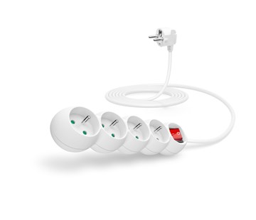 Prodlužovací kabelový přívod na 230V je vybaven dětskou ochranou všech zásuvek. Díky pootočení zásuvek o 45° je možné používat i objemnější napájecí adaptéry nebo úhlové koncovky. Možné zavěšení nebo pevná instalace na stěnu. Max. příkon spotřebičů až 2500 W. Testováno a certifikováno v Evropě.