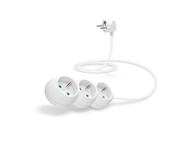 Prodlužovací kabelový přívod na 230V je vybaven dětskou ochranou všech zásuvek. Díky pootočení zásuvek o 45° je možné používat i objemnější napájecí adaptéry nebo úhlové koncovky. Možné zavěšení nebo pevná instalace na stěnu. Max. příkon spotřebičů až 2500 W. Testováno a certifikováno v Evropě.