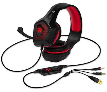 herní sluchátka • integrovaný sklápěcí mikrofon s ovladačem hlasitosti • 40mm elektrodynamické měniče • frekvenční rozsah 20 Hz – 20 kHz • impedance 20 Ohm • citlivost 114 dB • pasivní potlačení okolního hluku • šestibarevné podsvícení (červená, zelená, modrá, žlutá, tyrkysová, fialová) • 2× pozlacený jack konektor (sluchátka + mikrofon) • pozlacený USB 2.0 konektor (napájení podsvícení) • opletený kabel o délce 2,2 m • nastavitelný hlavový most s měkkým vnitřním polstrováním • snímatelné náušníky