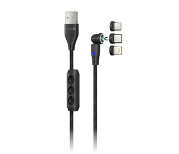 Praktický a univerzální kabel Magnetic PowerLink 3v1, s podporou nabíjení a přenosu dat, vyměnitelné magnetické konektory (USB-C, Lightning a MicroUSB) , nabíjení pomocí max. proudového toku 3 A. , prémiový nylonový oplet , Podpora nabíjení až 18 W, 360° rotační koncovka, 180° otočná hlava kabelu