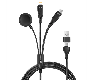 Univerzální nabíjecí kabel 6v1, Délka 125 cm, 1x Lightning, 1x USB-C (Type-C), 1x nabíječka na chytré hodinky (kompatibilní s Apple Watch), Podpora Quick charge 3.0, Max. napětí: 20 V, Max. proud: 5 A, Prémiový nylonový oplet. - USB-C -> USB-C 20V/5A (100 W max.)