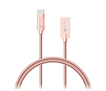 Kabel USB-C (Type C) -> USB-A v unikátním designu s flexibilním prémiovým opletem z vysoce kvalitní nerezové oceli SAE304 a podporou proudového toku 2,1 A pro rychlé nabíjení a přenos dat