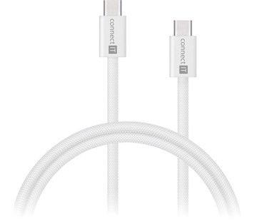Datový kabel USB-C -> USB-C s délkou 1 m bílé barvy je určený nabíjení zařízení a umožňuje současně také přenášet a synchronizovat data, fotografie a hudbu všech zařízení s USB-C portem. Jedná se o velmi kvalitní kabel s dlouhou životností a jemným designovým opletem.