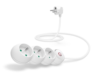 3 PowerRex2 1,5m WHITE, Prodlužovací přívod na 230 V,  s vypínačem všech zásuvek a dětskou ochranou, 3 zásuvky, Délka přívodního kabelu 1,5 m, Hlavní síťový vypínač ON/OFF, Max. proudové zatížení: 10 A, Vodič: H05VV-F 3G x 1.00 mm2, Zásuvky v úhlu 45°