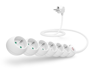 6 PowerRex2 5m WHITE, Prodlužovací přívod na 230 V, s vypínačem všech zásuvek a dětskou ochranou, 6 zásuvek, Délka přívodního kabelu 5 m, Hlavní síťový vypínač ON/OFF, Max. příkon všech spotřebičů: 2300 W, Max. proudové zatížení: 10 A, Vodič: H05VV-F 3G x 1.00 mm2