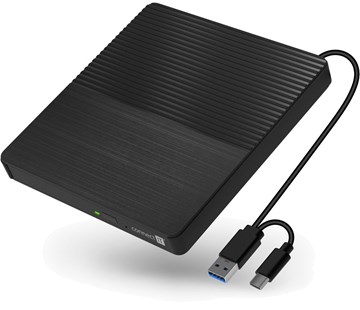 Multifunkční CD/DVD externí mechanika s čtečkou SD/MicroSD; Podrpora CD/DVD velikosti 80/120 mm; Rychlost čtení: DVD 8x/CD 24x; Rychlost zapisování: DVD 8x/CD 24x; Konektor: USB-C/USB-A; 2 x USB-A 2.0 port; 1 x USB-C port