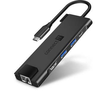 Prakticky tvarovaný USB-C hub "Multi5in1" pro připojení až 5 periferií (USB-C, HDMI, 2x USB-A a RJ45 Gigabit Ethernet). Umožní napájení a připojení dalších periferií jako jsou např. monitor, televize, myš, klávesnice, atd.