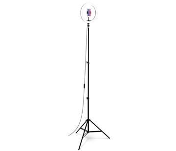 Nastavitelná výška 0,68 až 2,1 m; Celokovová konstrukce stativu; Kulový 360° kloub; Telefony až do šířky 80 mm; Možnost nastavení barevné teploty světla; Možnost napájení i powerbankou; Možnost sklopení nohou; Adaptér není součástí; Délka přívodního kabelu: 1,8 m; Rozměry 545 × 2405 × 545 mm