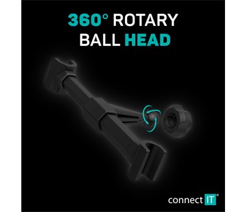 držák do auta; pro telefony a tablety od 6 do 14"; instalace na opěrku sedadla; nastavitelné kleště a silikonové opěrky; rotace držáku 360°; beznástrojová instalace; rozpětí pro instalaci na opěrku hlavy 105 - 150 mm; rozpětí kleští pro uchycení telefonu/tabletu 140 - 290 mm