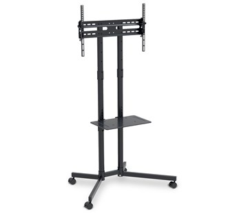 Pojízdný stojan Wheelie III, Robustní konstrukce z oceli unese spolehlivě až 40 kg obrazovku, Police má nosnost 10 kg, Náklon nahoru: 10°, Náklon dolů: 10°, Min. úhlopříčka obrazovky: 37" (94 cm) Max. úhlopříčka obrazovky: 70" (177 cm)