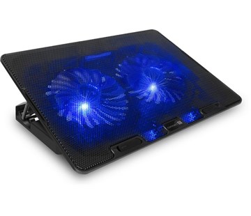 Chladicí podložka pod notebook CONNECT IT "FrostBreeze" CCP-1910-BK, která vybavená dvěma ventilátory s modrým LED podsvícením, celokovovou chladící mřížkou a výškovým čtyřstupňovým polohováním. Kompatibilní s notebooky do 15,6".