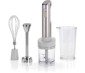 Součástí vybavení je mixovací nástavec z nerezové oceli. Dále máte k dispozici plastovou mixovací nádobu o celkové kapacitě 800 ml, kterou je možné využít v kombinaci s mixovacím nástavcem nebo nástavcem na šlehání. Spolu s tyčovým mixér Cuisinart RHB100E v balení dále naleznete také sekací nástavec s nádobou o objemu 250 ml, která je vhodná pro sekání ořechů, bylin nebo pečiva. Nástavce je možné mýt v horním koši myčky nádobí. |