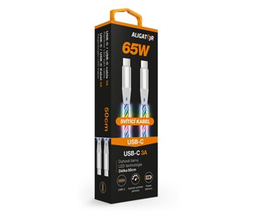 Datový a nabíjecí USB-C /Lightning kabel: LED technologie; Kabel po připojení ihned svítí a mění barvy; Duhové barvy RGB; Ultra rychlé nabíjení: 3A; Power Delivery až 30W; Kompatibilní s iPhone/iPad s konektorem Lightning; Vysoká rychlost přenosu dat; Precizní zpracování měděného opletení; Délka: 50cm