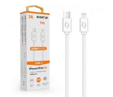 Popis a parametry Datový kabel ALIGATOR Power 3A, USB-C/Lightning, 1m bílý