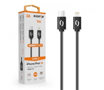 Popis a parametry Datový kabel ALIGATOR Power 3A, USB-C/Lightning, 1m černý