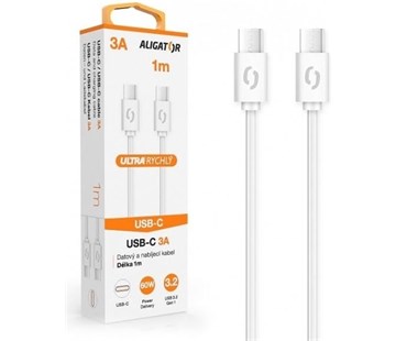 Popis a parametry Datový kabel ALIGATOR Power 3A, USB-C/USB-C, 1m bílý
