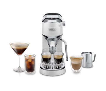 Pákový kávovar Dedica Duo vám přinese dokonalý zážitek z kávy v pohodlí vašeho domova. Díky barevným dotykovým ikonám na ovládacím panelu si snadno připravíte své oblíbené nápoje – espresso, dvě espressa nebo osvěžující Cold Brew, které je hotové do 5 minut. S výkonnou parní tryskou My LatteArt si jednoduše připravíte dokonale napěněné cappuccino. S elegantním a kompaktním designem o šířce pouhých 15 cm se kávovar vejde i do menších kuchyní. V balení navíc najdete vše, co potřebujete – konvičku na mléko, páku, dvě sítka, pěchovadlo, odměrku a čisticí jehlu. Dopřejte si kávu jako od baristy každý den!