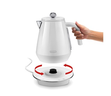 Díky 360° otočné základně je používání rychlovarné konvice skutečně pohodlné. Otočná základna a stočený napájecí kabel v ní zajišťují plné pohodlí a svobodu při používání.