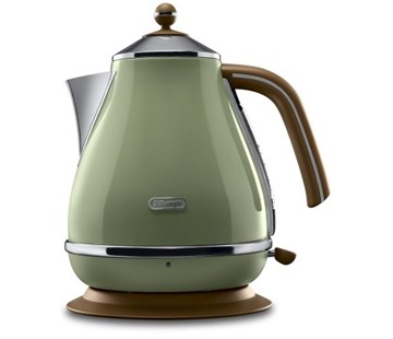 Jedinečný vzhled rychlovarné konvice DeLonghi KBOV 2001 GR v originální olivově zelené barvě v kombinaci s hnědými a chromovými detaily z unikátní designové řady Icona Vintage ve vás probudí pocity klidu a pohody. Vůně právě uvařené kávy spolu s jedinečnou vůní domova ve vás vyvolá pocity naprosté harmonie. Tato konvice se pro vás stane synonymem krásných a nezapomenutelných chvil.