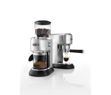 De Longhi KG 520 M je moderní mlýnek na kávu, který vám umožní jednoduchou přípravu kávy na profesionální úrovni, a to přímo v pohodlí domova. K dispozici zde máte celkem 18 stupňů nastavení hrubosti od extra jemných zrn na espresso po ta nejhrubší zrna vhodná na přípravu french press. Kromě toho můžete využít možnost nastavení počtu porcí od 1 do 14. Celkový objem zásobníku na kávová zrna činí 350 g.