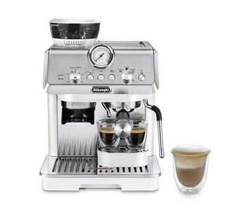 pákový kávovar • připravíte espresso, cappuccino, caffe latte • příkon 1400 W • tlak 15 barů • 2,5l nádoba na vodu • integrovaný mlýnek na kávu • nastavitelná hrubost mletí v 8 stupních • parní tryska MyLatte • systém aktivní kontroly teploty • držák na páku • tlakoměr • podpěra pro malé hrnky • automatické odvápňování • produktová řada La Specialista Arte • 3 přednastavené programy (espresso, americano, horká voda) • baristická sada včetné dávkovací násypky, pěchovadla a konvičky na mléko