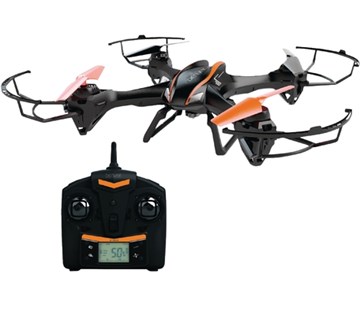 Ovladač dronu pracuje na frekvenci 2,4 GHz a funguje na 4 AA baterie (nejsou součástí balení). Jeho dosah činí 60–80 m.
